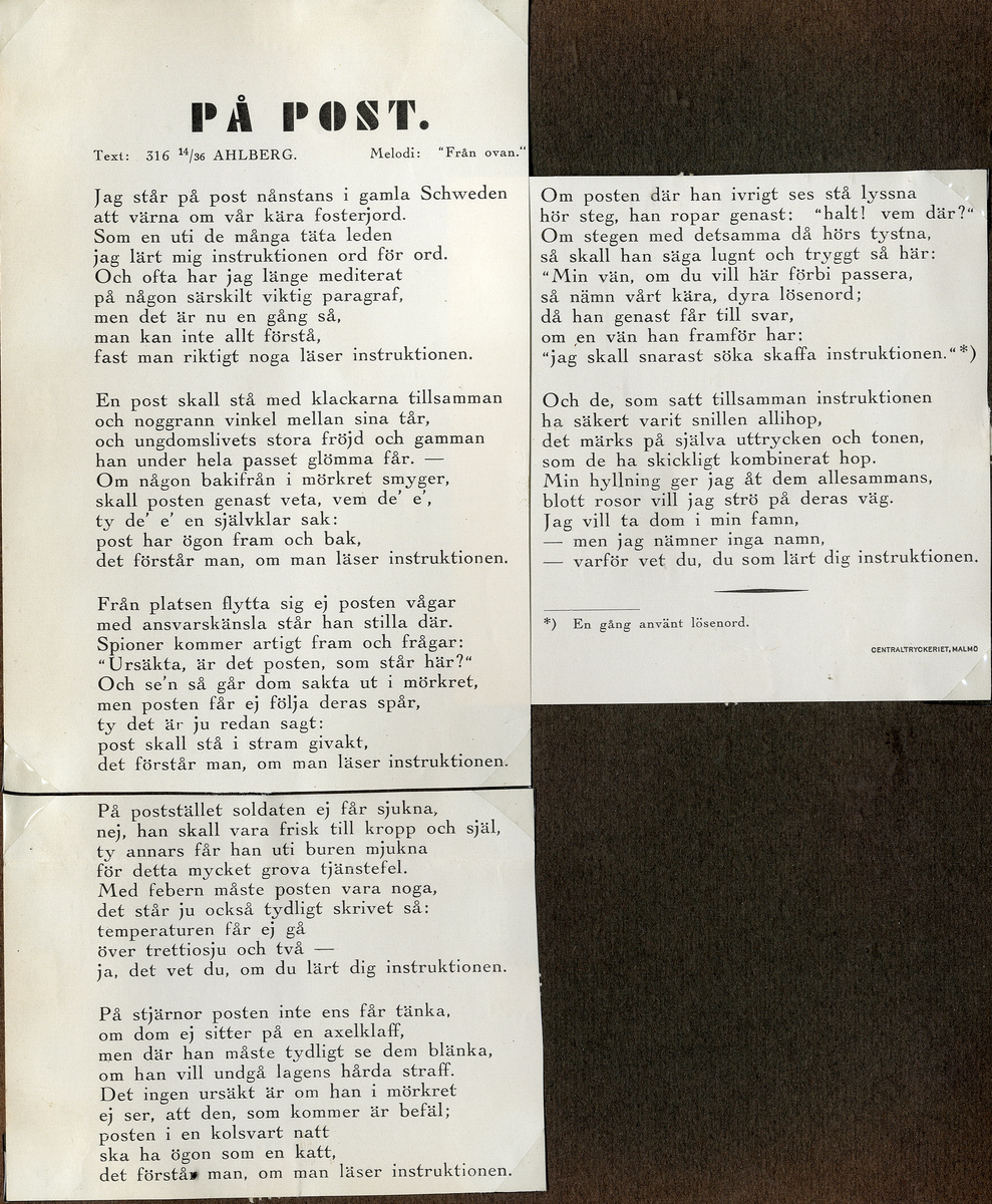 "På Post. Text: 316 14/36 Ahlberg..."