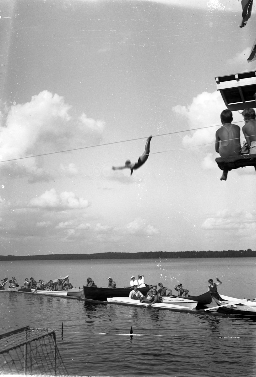 Foto från en hopptävling på Evedals badplats, Växjö.