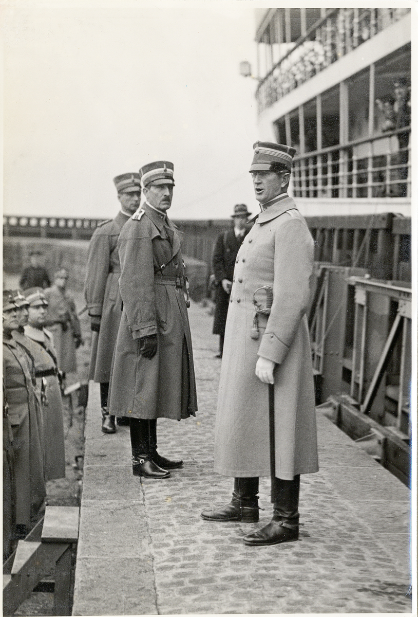 Förhållningsorder m.m. på kajen. I mitten syns bataljonschefen, överstelöjtnant Arthur Nordenswan.