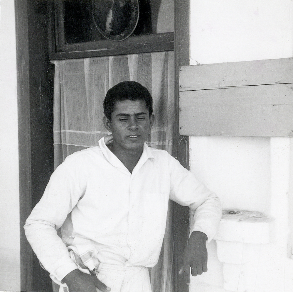 Hassan, svensktalande yngling (trol. allt-i-allo), utanför kompanichefens rum i Gaza 1959-60.