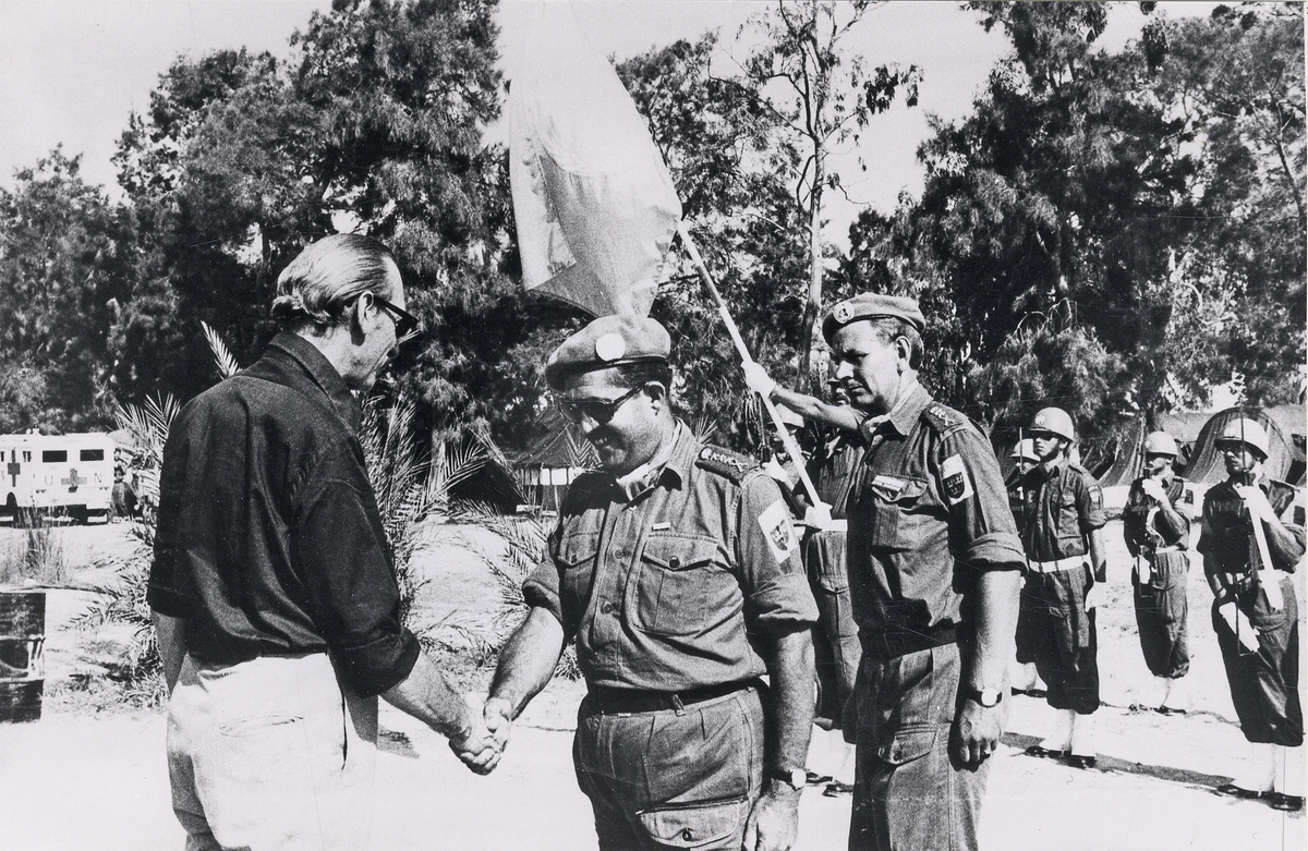 FN:s generalsekreterare Curt Waldheim hälsar på den svenska FN-bataljonen i Sinai.