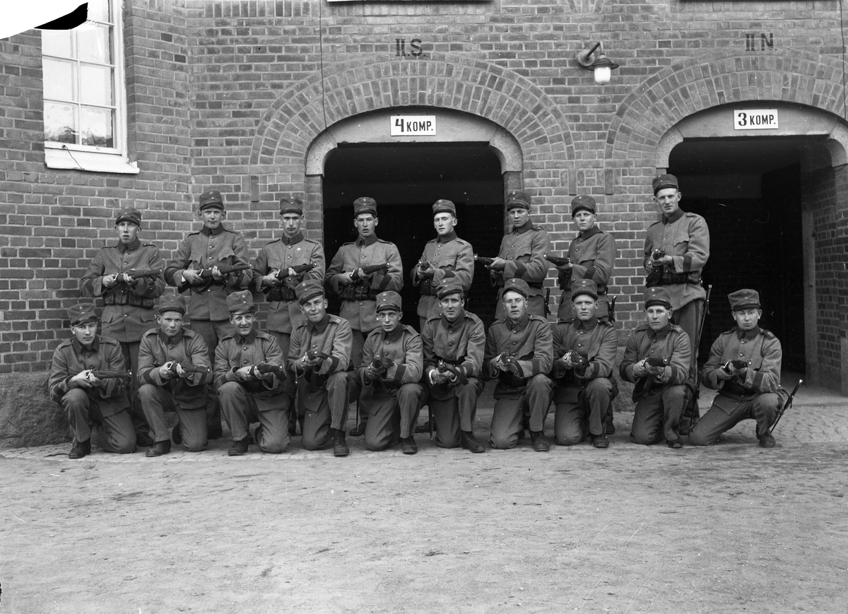 Soldater uppställda på I11 i Växjö, ca. 1930-tal.