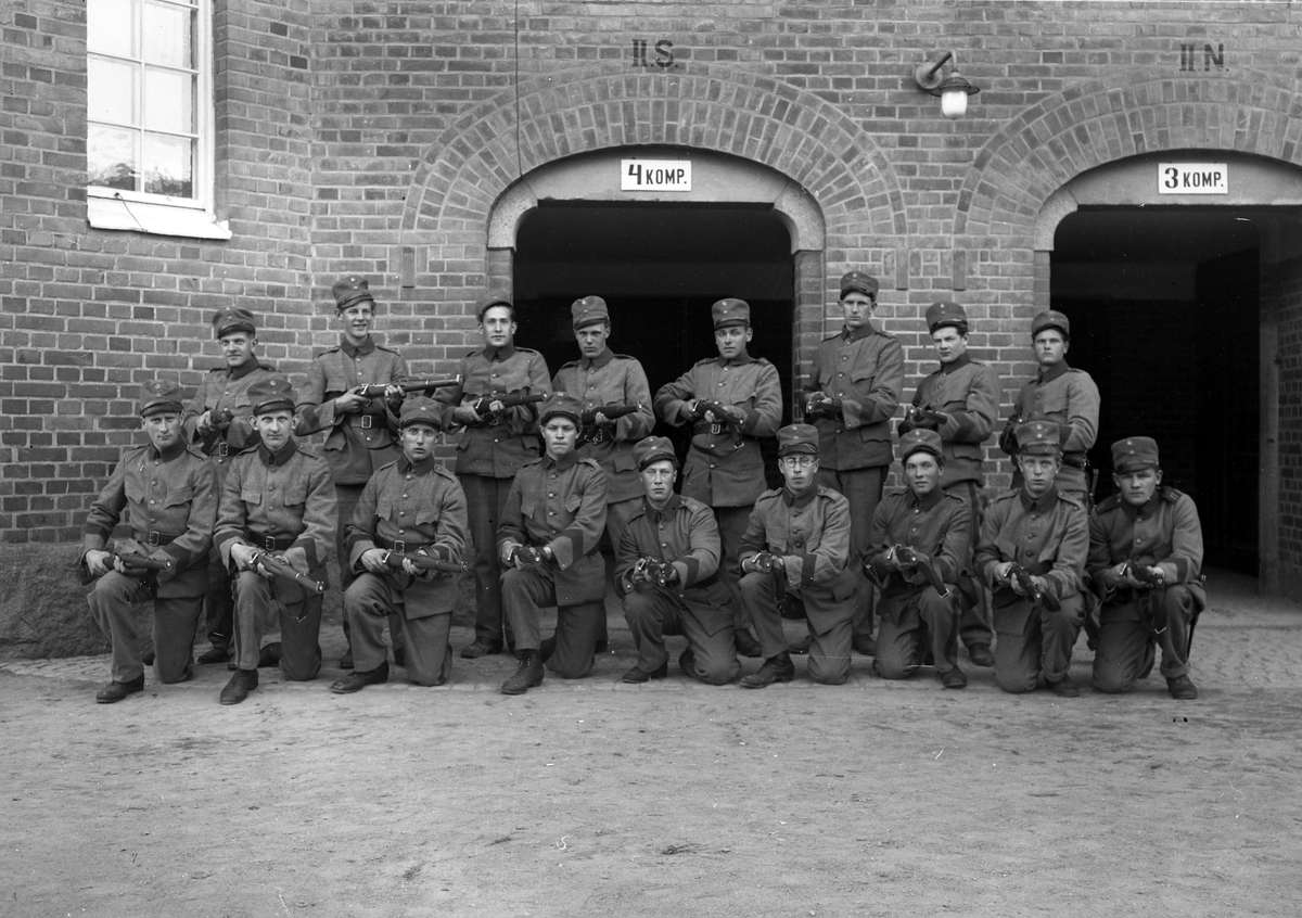 Soldater uppställda på I11 i Växjö, ca 1930-tal.