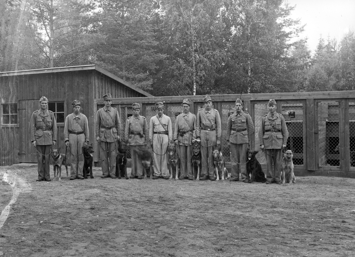 Hundförare vid hundgård,