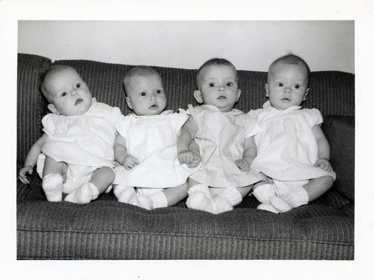 Fotografi på fyra flickor som sitter i en soffa fr.v. Anne-Marie, Elisabeth, AnnCatrin och Birthe.