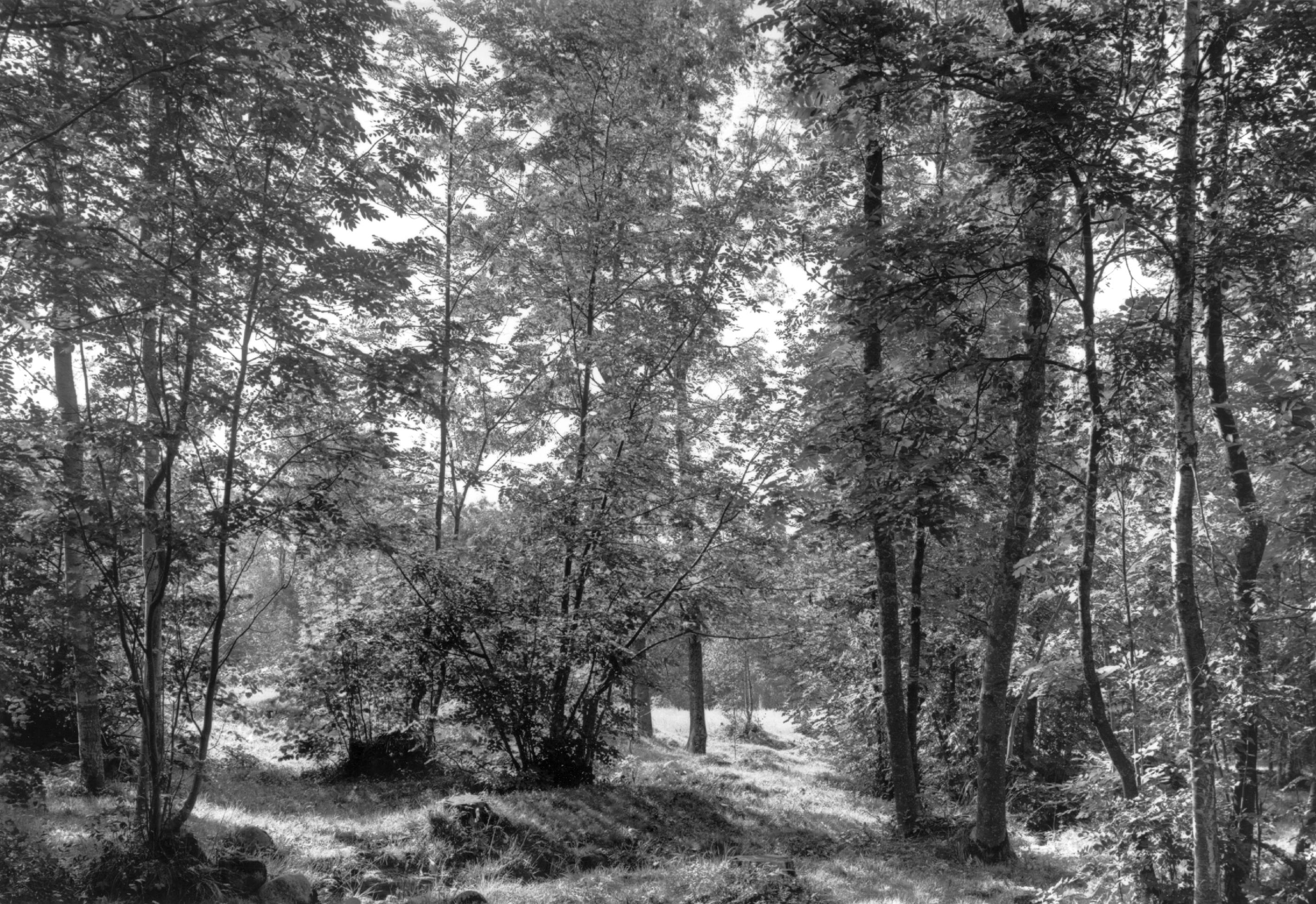 Åker bland gammal löväng vid sjön Undens östra strand.