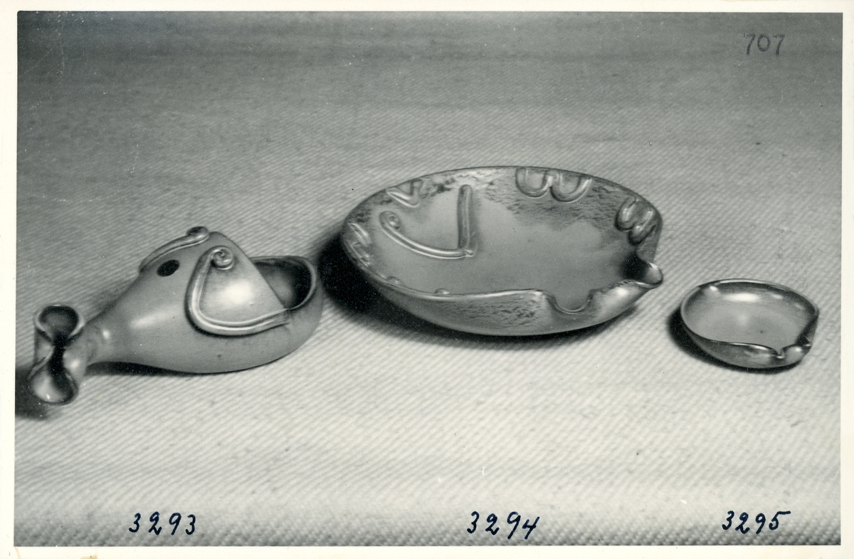 Konfektyrskål 3293, skål 3294 och askfat 3295 rån Bo Fajans, formgivare Eva Jancke-Björk, 1900-talets mitt.