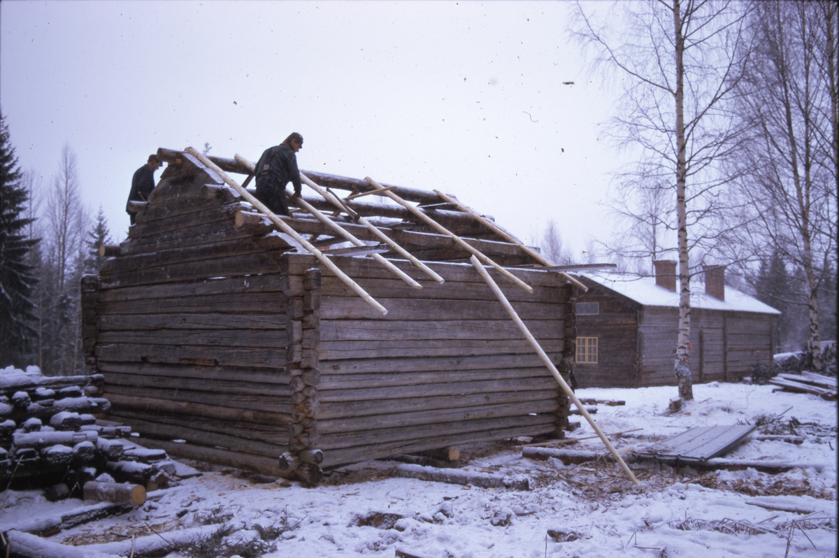 Taktäckning av uthusbygge vid parstugan 45 012. Parstuga, Daljsön, Arbrå.