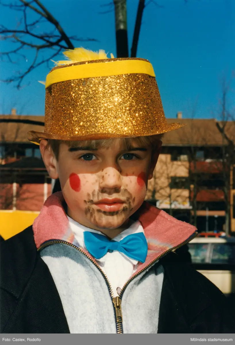 Påskfirande på Mölndals torg i mars 1997. Porträtt av en påskgubbe.