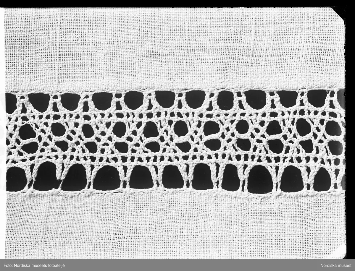 Katalogkort med foto av knypplad spets. Påskrift Fru B. Gyllenhammar, Knyppling, Hälsingland Ovanåkers sn.