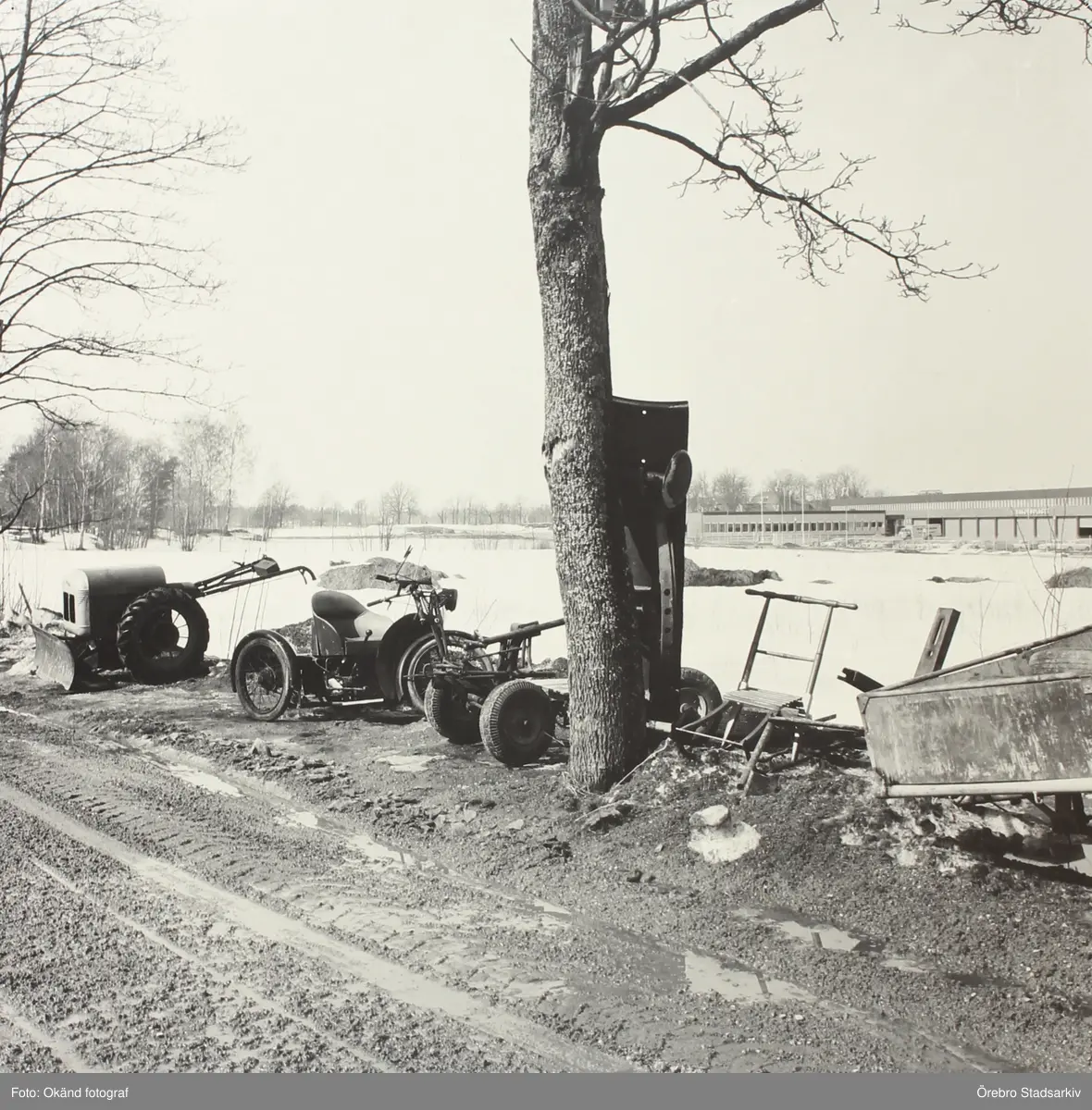Väghyvel och andra maskiner vid vägkanten, 1960-tal