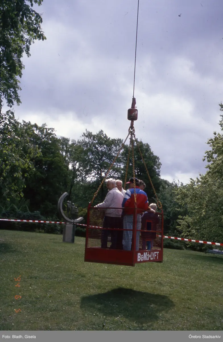 Grupp lyfts upp i korg på Båtens dag, 1994-06-03