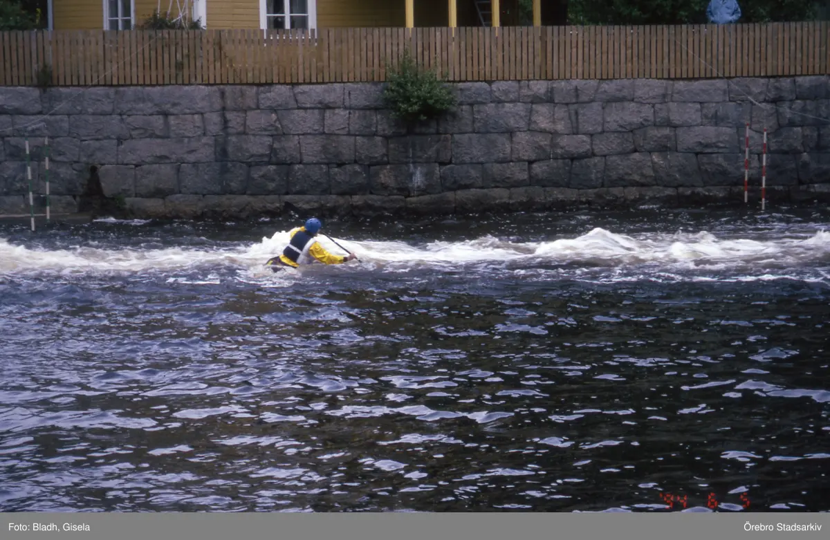 En ensam kanotist i Svartåns virvlar på Båtens dag, 1994-06-03