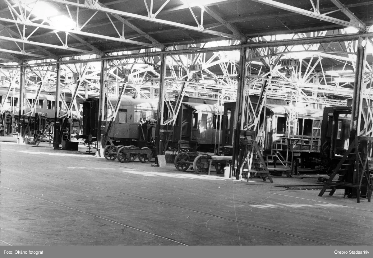 Passagerarvagnar i vagnverkstaden på Centralverkstäderna, 1930-tal