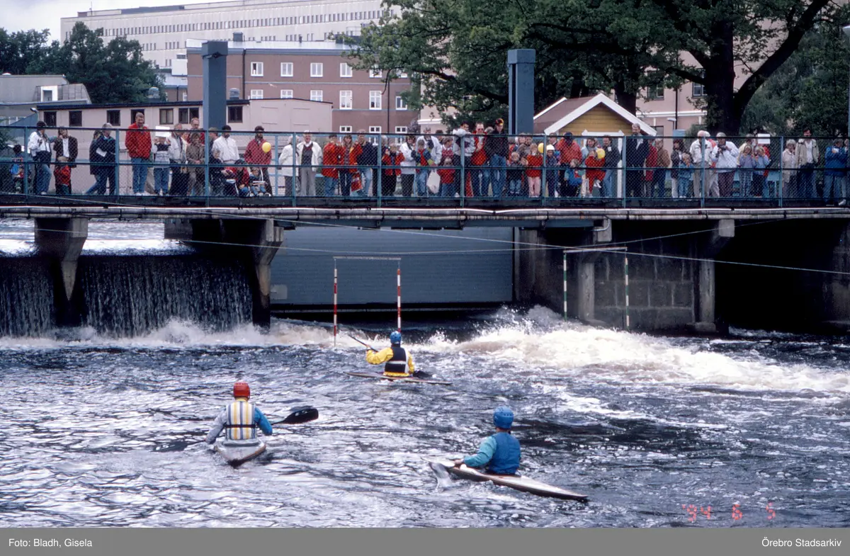 Tävling i paddling i Svartån på Båtens dag, 1994-06-03