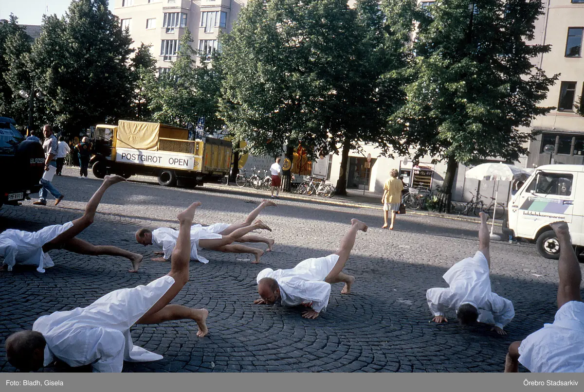 Gymnastikuppvisning på Järntorget av Kents gubbar, 1992