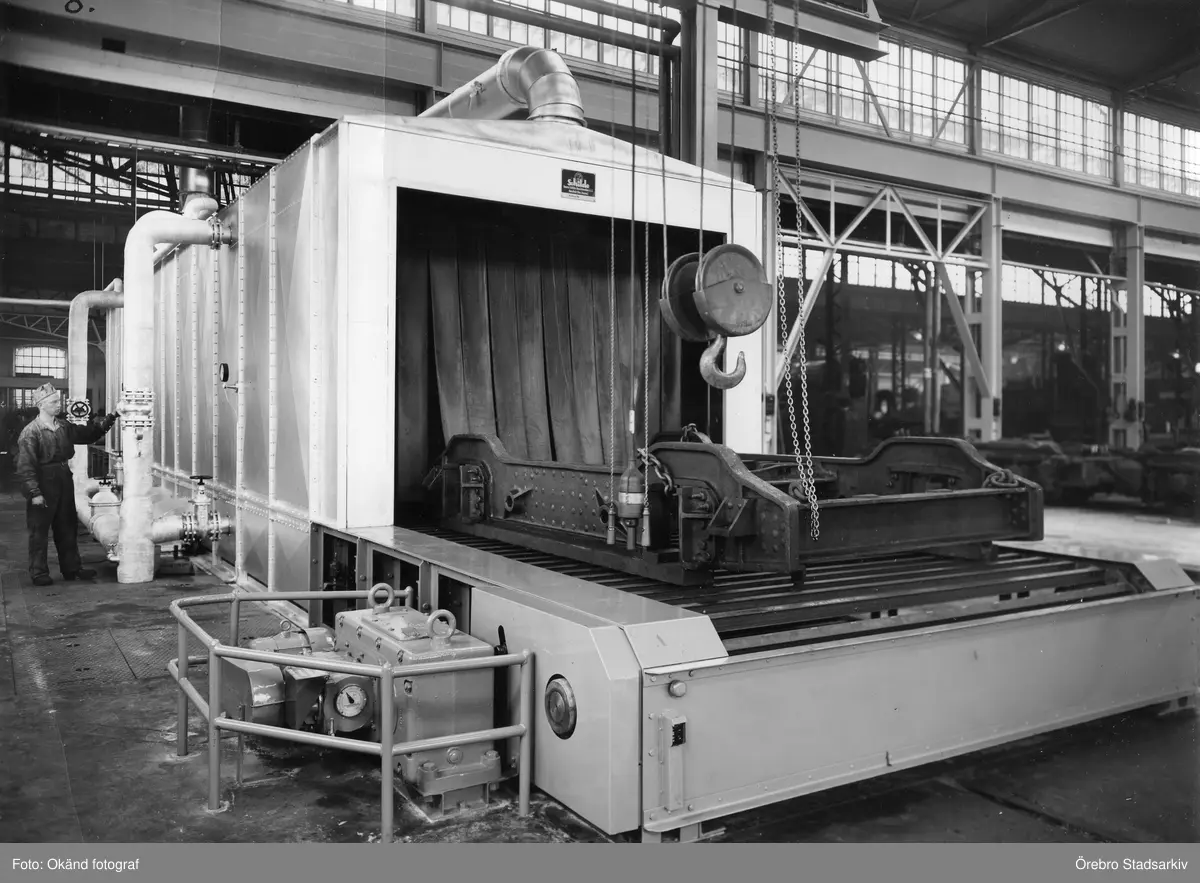 Man sköter tvättmaskinen i lokverkstaden på Centralverkstäderna, 1960-tal