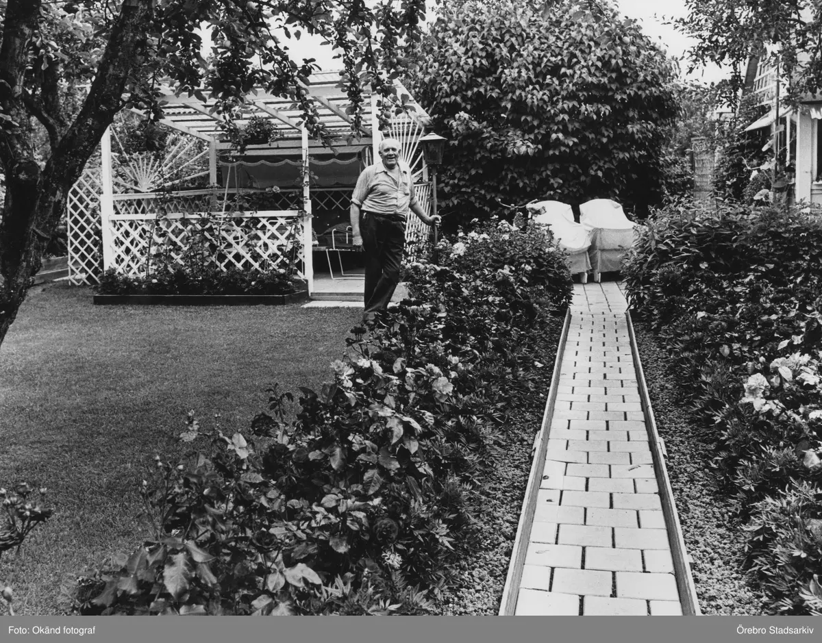 Man i sin trädgård i CV:s kolonistugeområde, 1960-tal