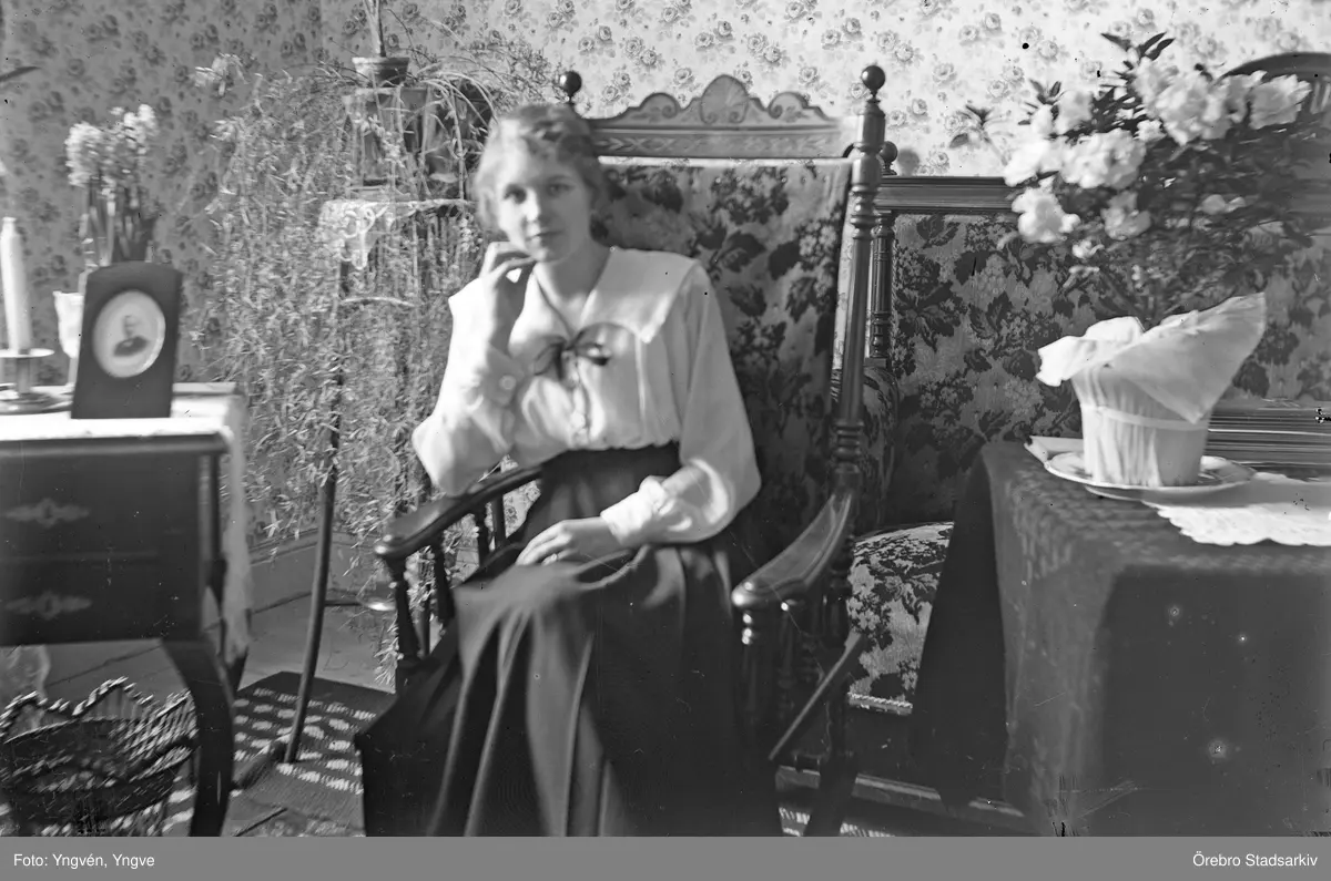 Ung tankfull kvinna sitter i en gungstol, 1920-tal