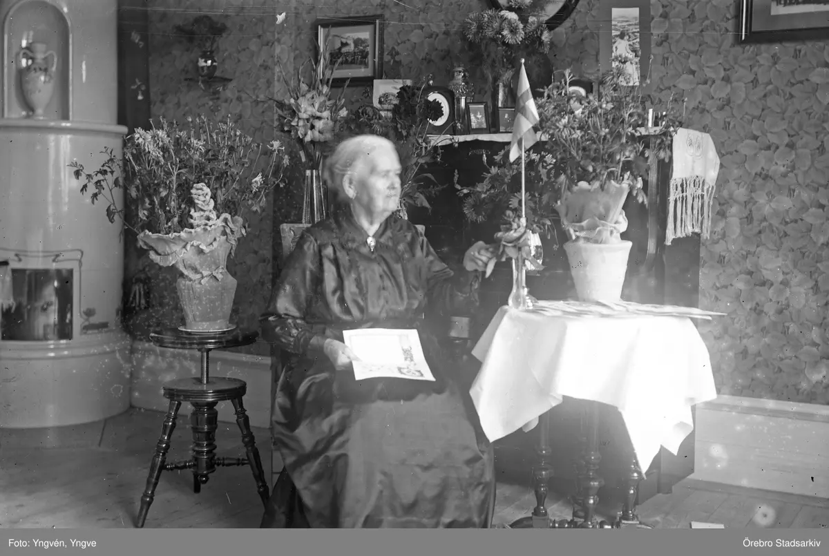 Kvinna som fått telegram till sitt födelsedagsfirande, 1920-tal