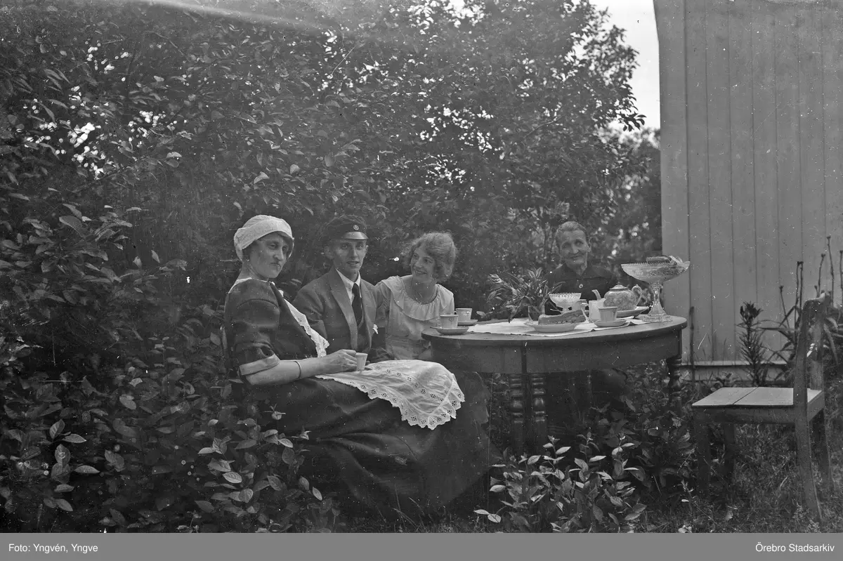 Firande av realexamnen med en kopp kaffe i trädgården, 1920-tal