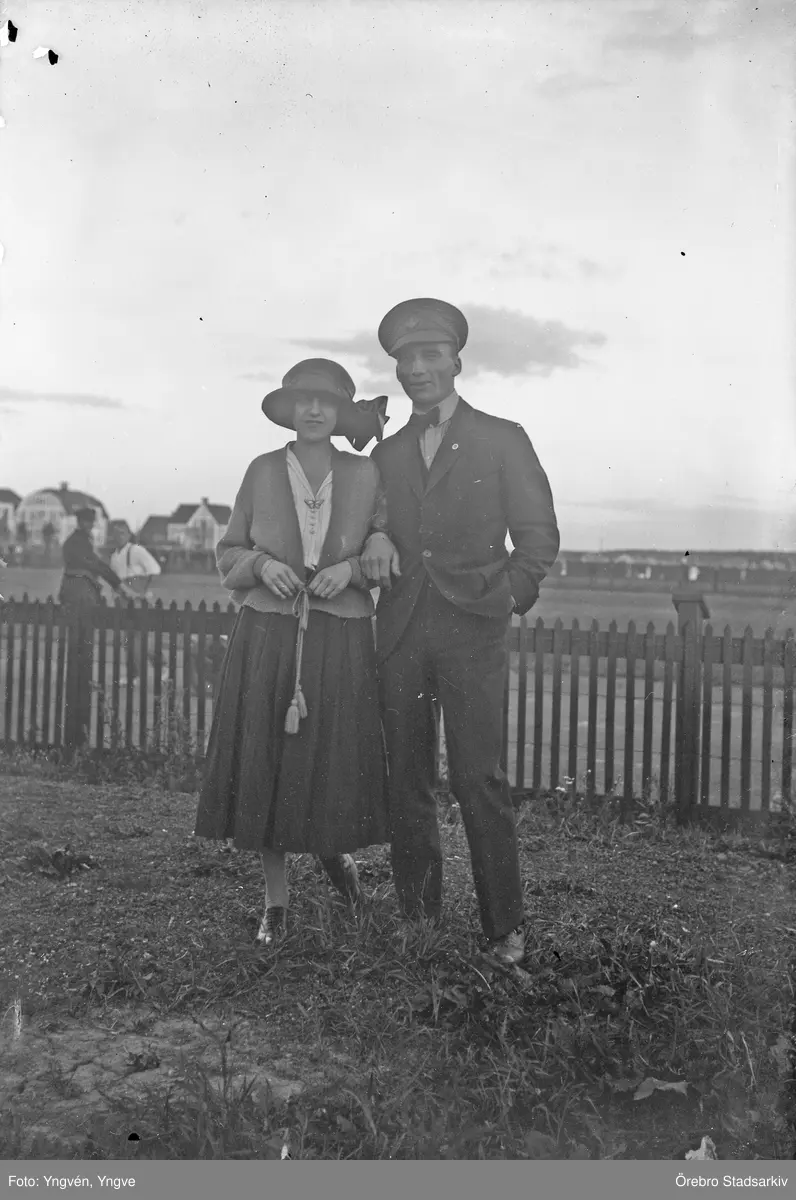 Par poserar framför kameran, 1920-tal