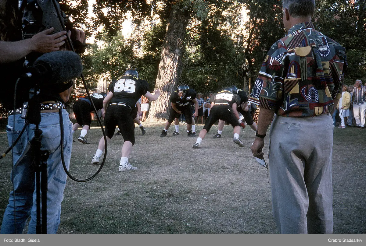 Rugbyspelare visar upp sig inför TV-programmet Sommarnöje på Frimurareholmen, 1994
