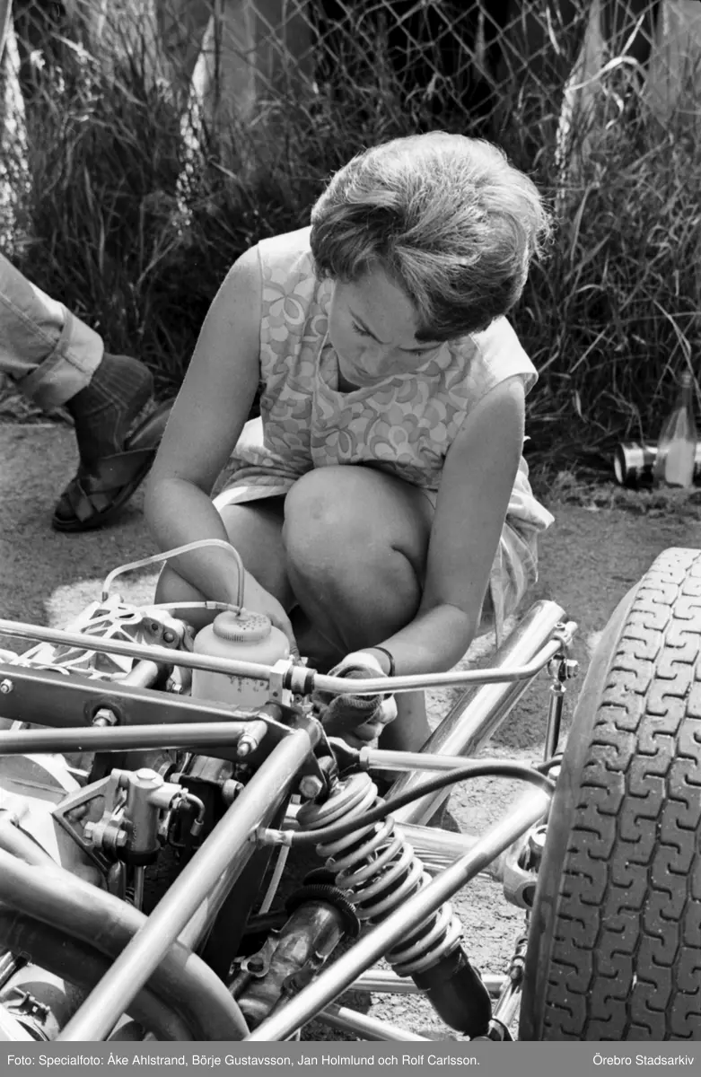 Kvinnlig mekaniker på Kanonloppet i Karlskoga. 1968-08-11