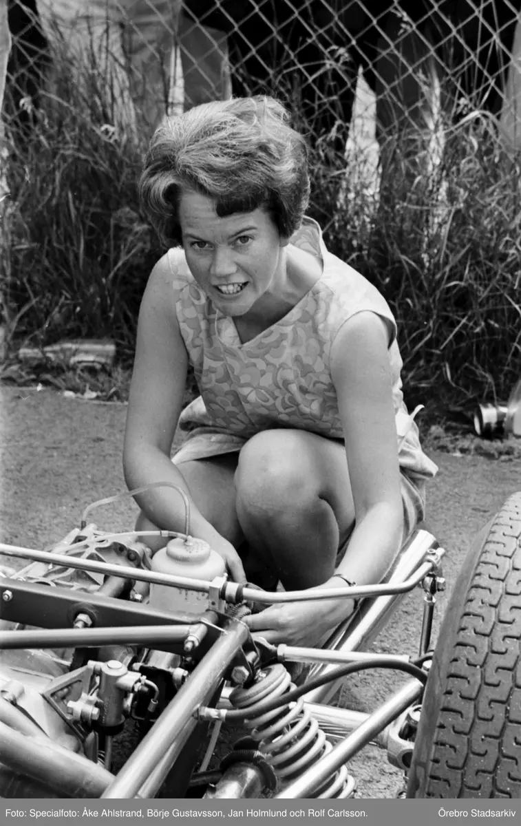Titel: Kvinnlig mekaniker på Kanonloppet i Karlskoga, 1968-08-11