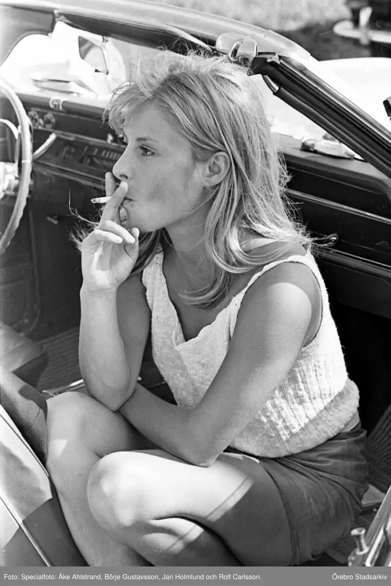 Rökande kändis under Kanonloppet i Karlskoga. 1968-08-11