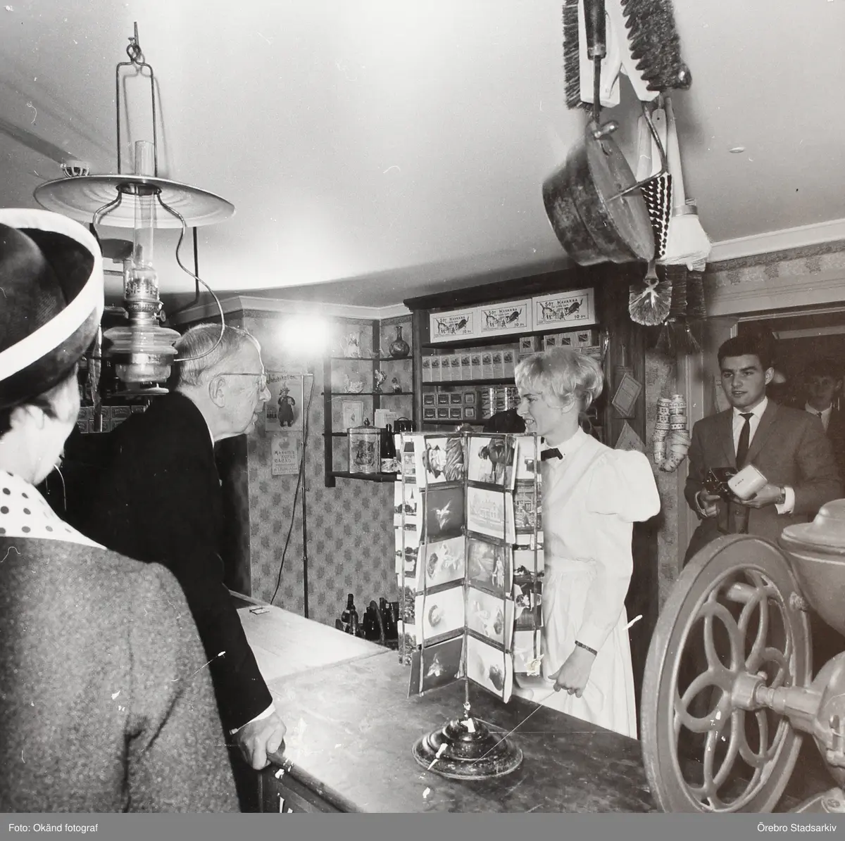 Kung Gustav VI Adolf besöker handelsboden i Wadköping, 1965