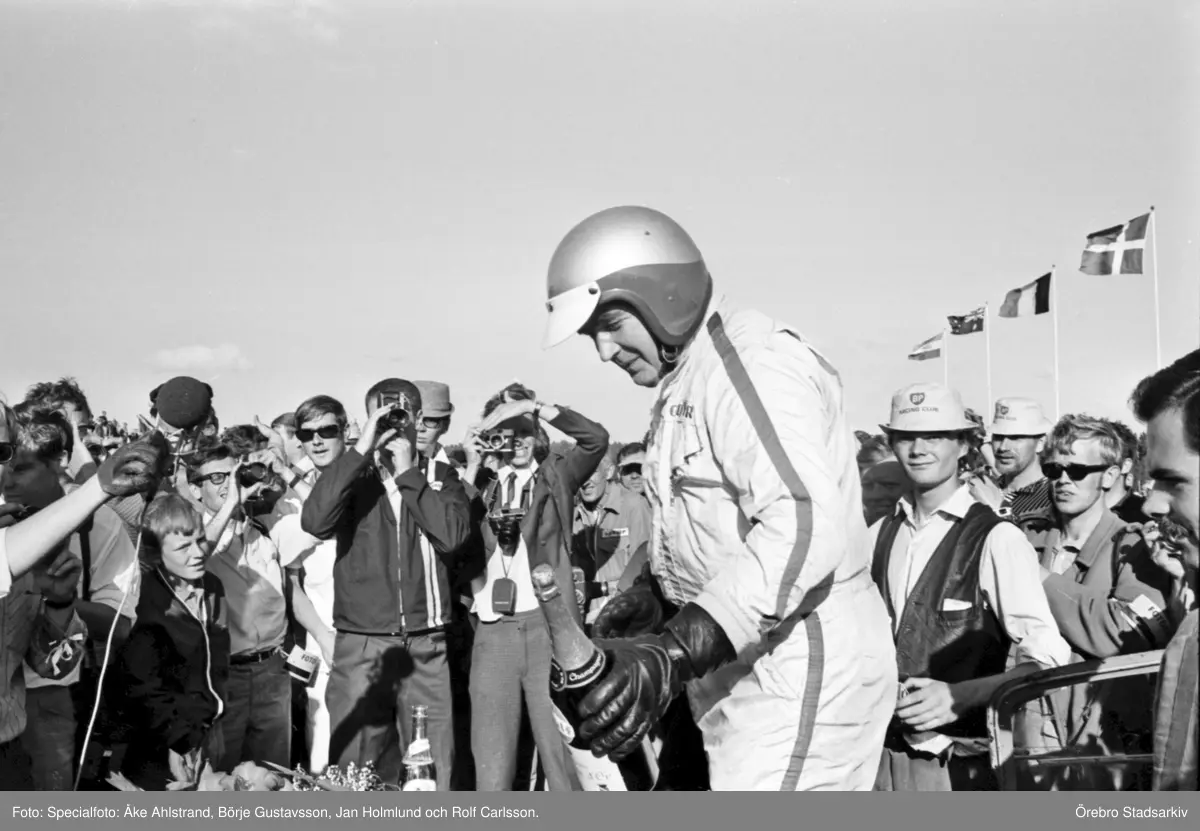 Piper med segerchampagnen efter Kanonloppet i Karlskoga, 1968-08-11