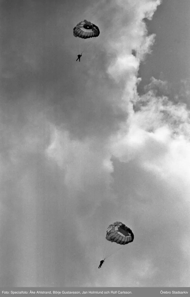 Två fallskärmshoppare under Kanonloppet i Karlskoga, 1968-08-11