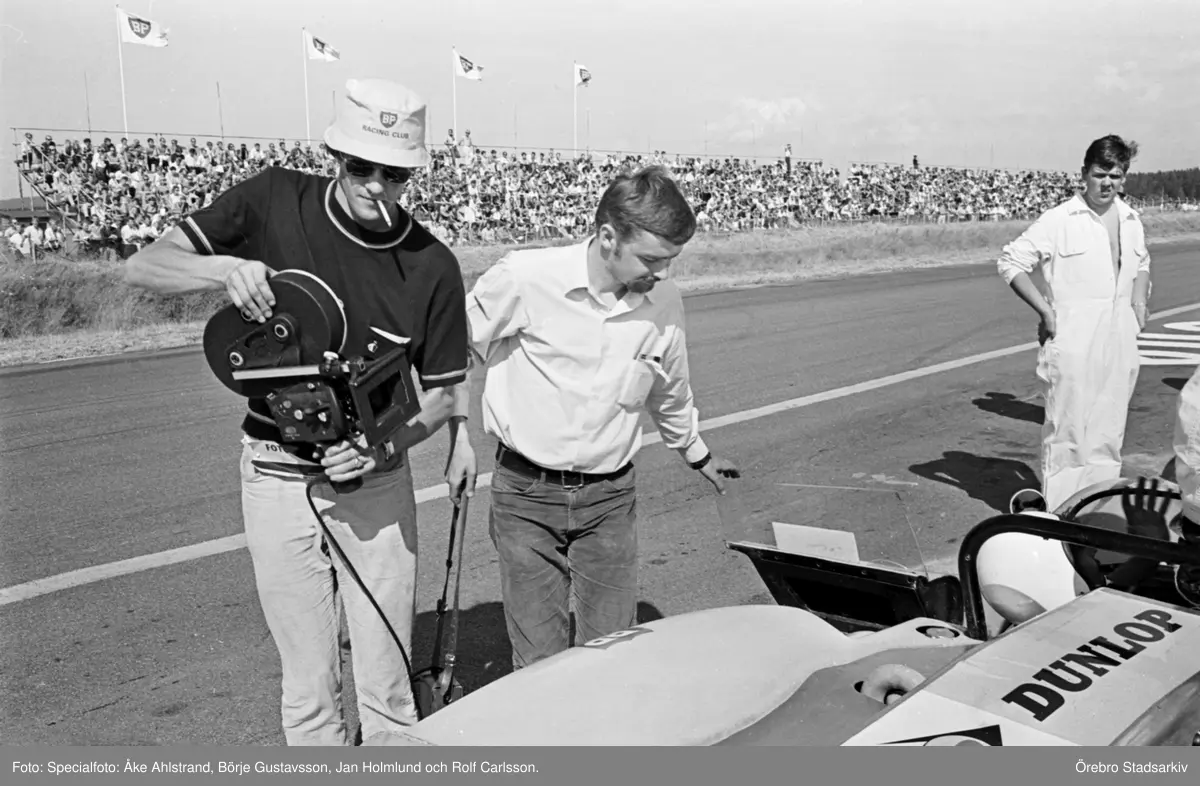 Filmfotograf vid Essos bil före Kanonloppet i Karlskoga, 1968-08-11