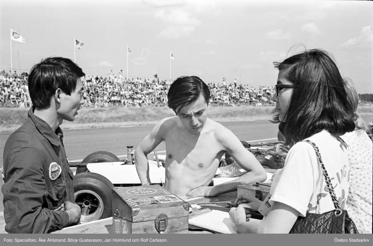 Japansk förare byter om inför Kanonloppet i Karlskoga, 1968-08-11