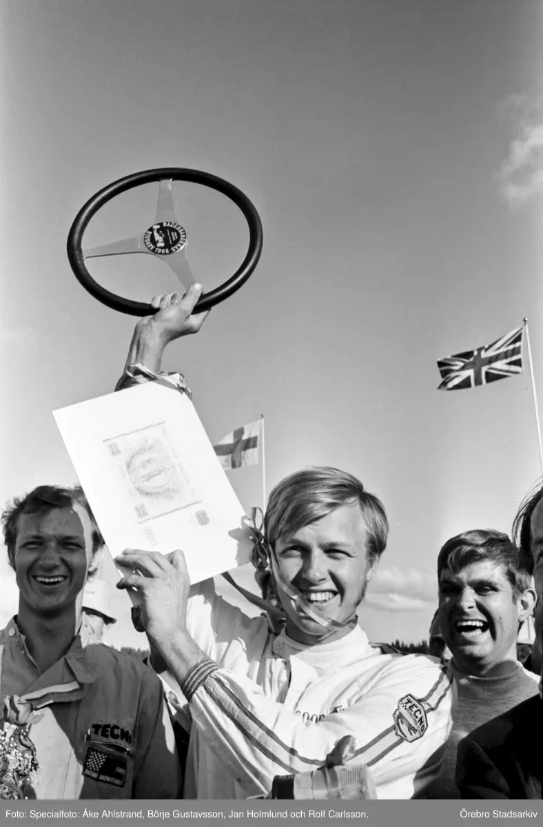 Ronnie höjer trofén på Kanonloppet i Karlskoga, 1968-08-11