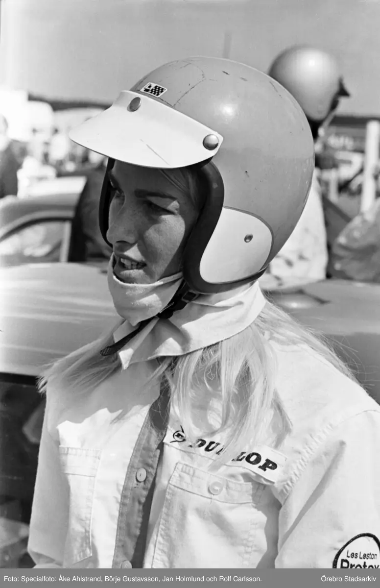 Närbild på Liane Eneman från Nederländerna inför Kanonloppet i Karlskoga, 1968-08-11