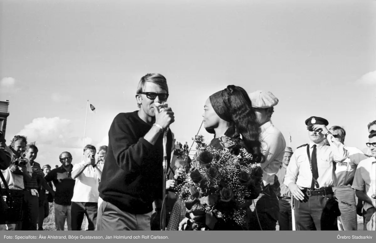 Sven-Bertil Taube och Eartha Kitt underhåller på Kanonloppet i Karlskoga, 1968-08-11