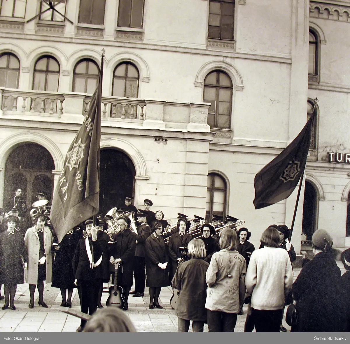 Frälsningsarmén utanför gamla teatern, 1970-tal