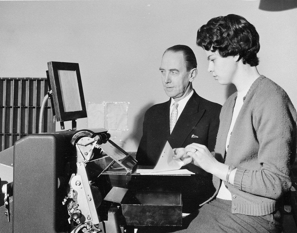 lönebesked. Inger Holm på kameralbyråns hålkortsavdelning matar fram