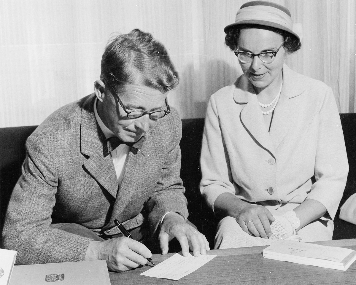 Herr Malmrén skriver under första gireringskortet från kontot