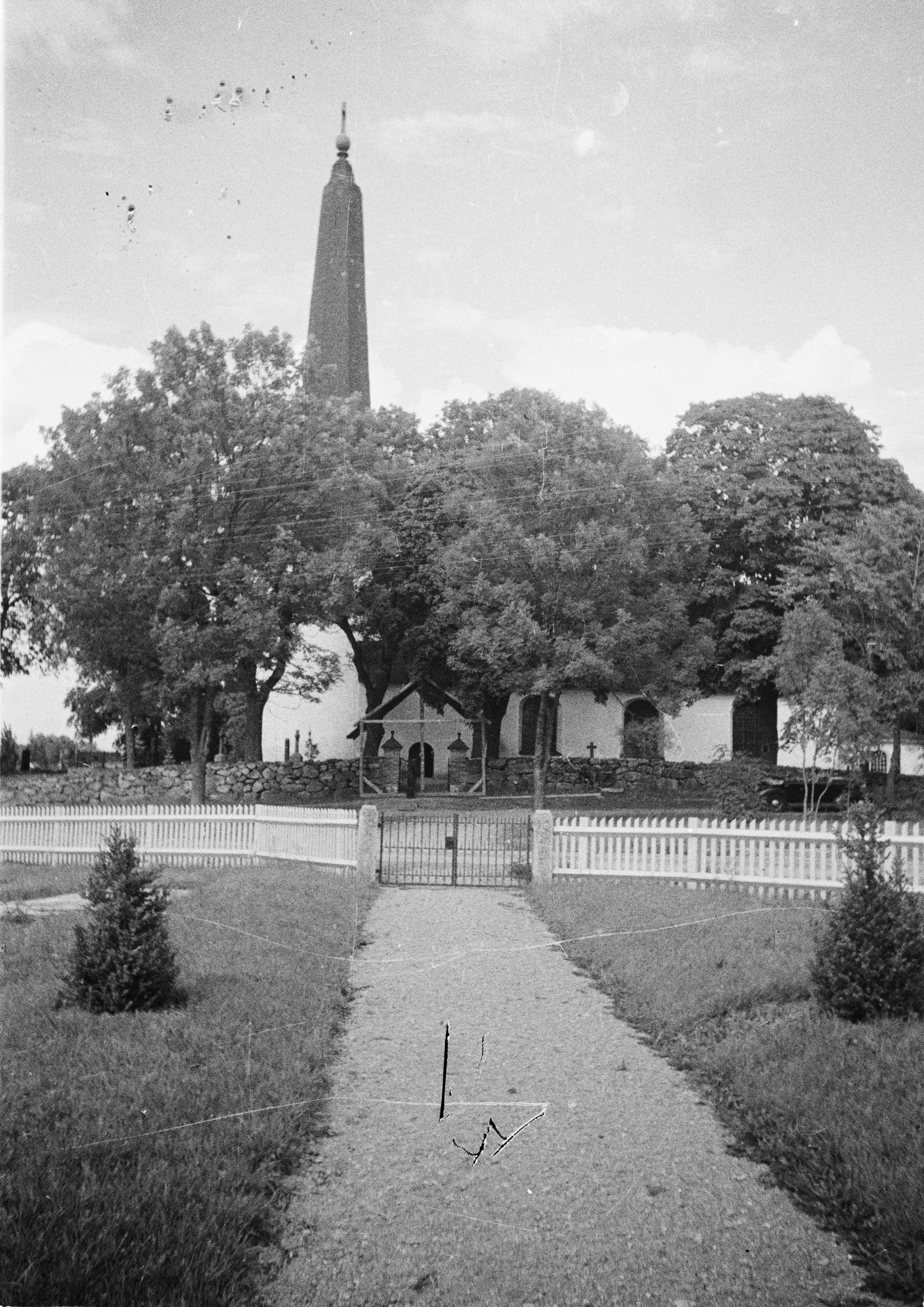 Kyrkan från syd. Långsmal och rektangulär gråstenskyrka.