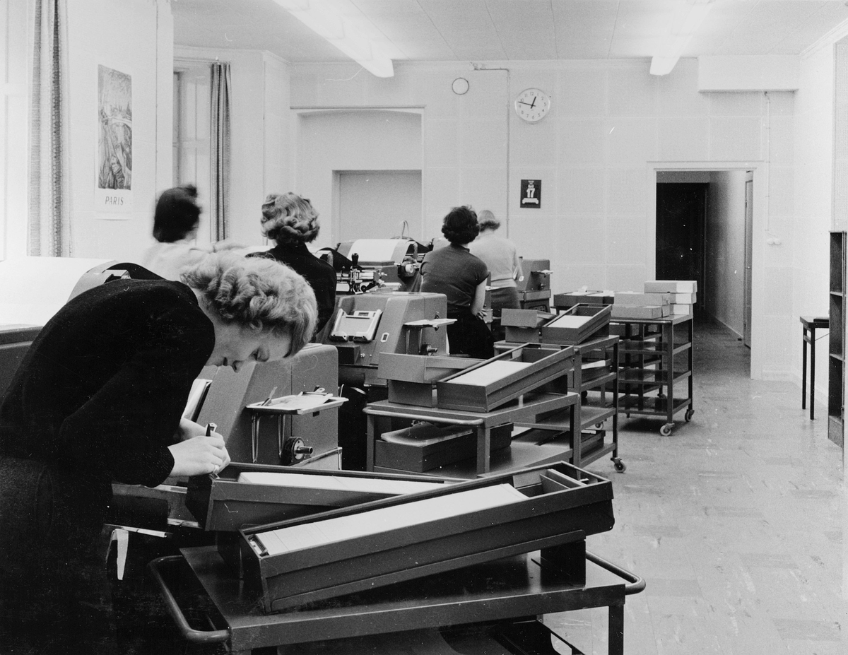 Tabuleringsavdelningen på 1 trappa, Bull tabulatorer. Till vänster fönster åt gården.