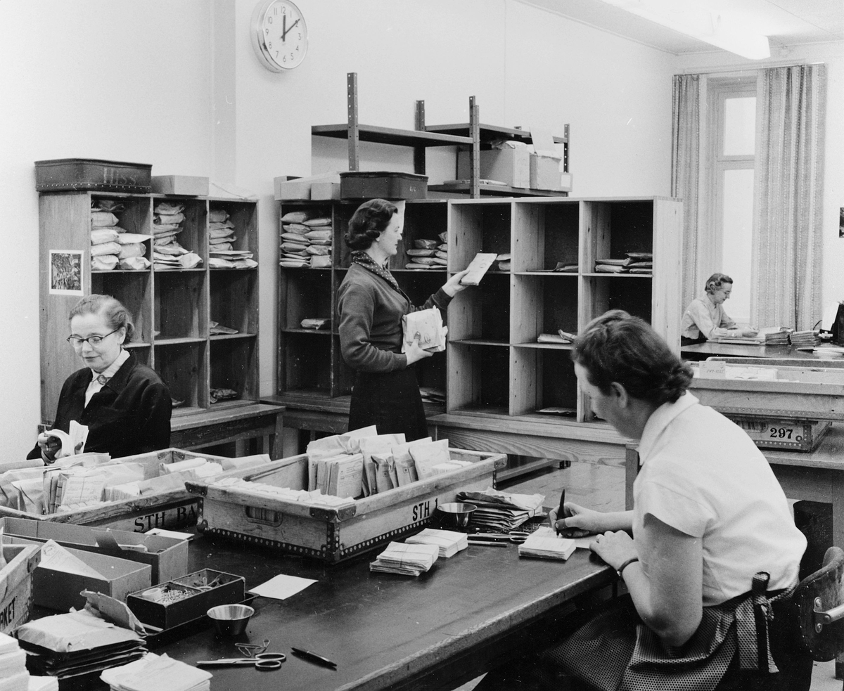 Postöppningen på 1 trappa. Här tas emot och uppsorteras de