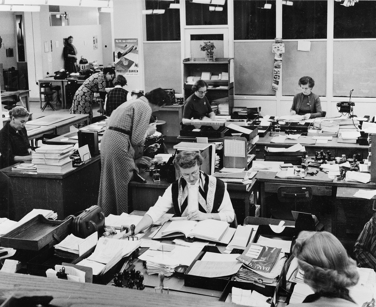 Postgirokontorets Undersökningsavdelning på nedre botten. Postgirohuset, Stockholm.