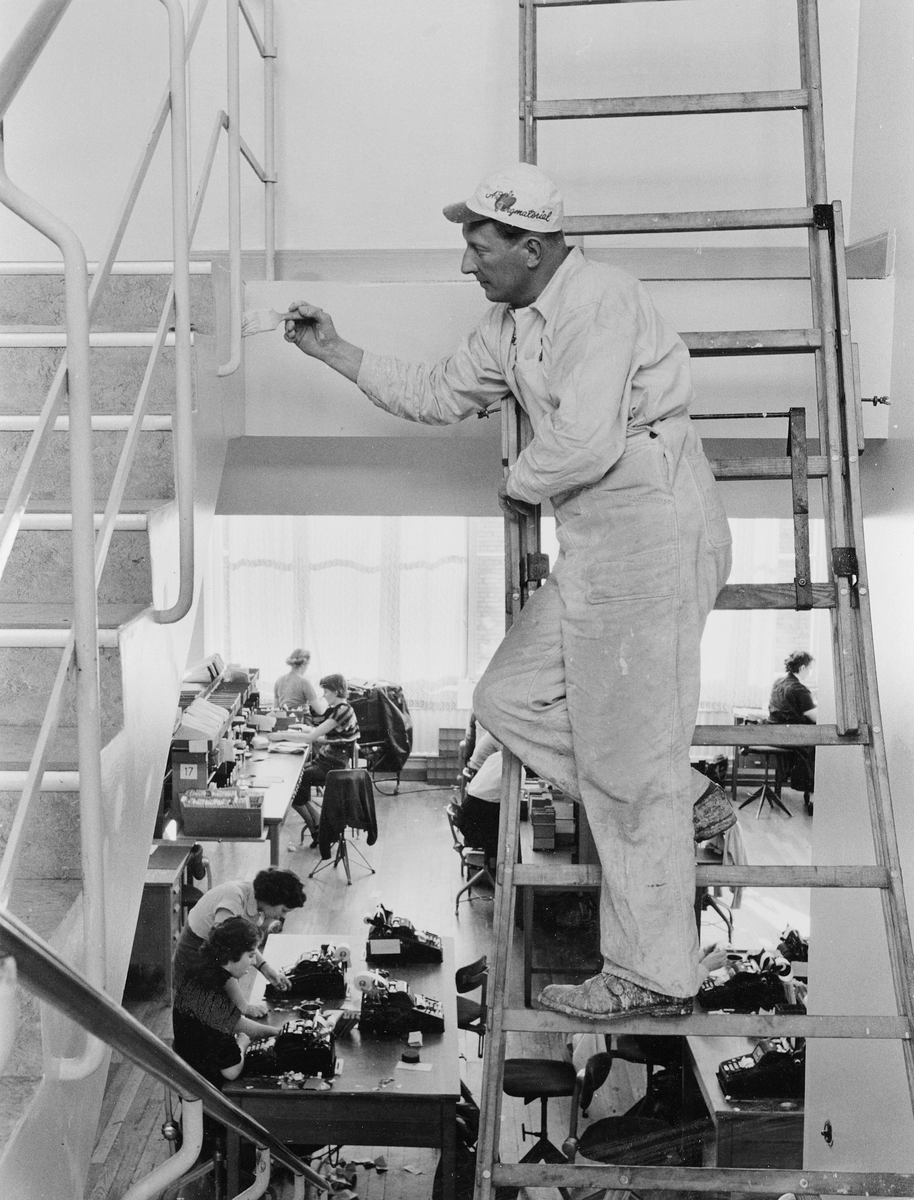 Rune Malmström har målningsarbete i trappan mellan avdelningarna C
