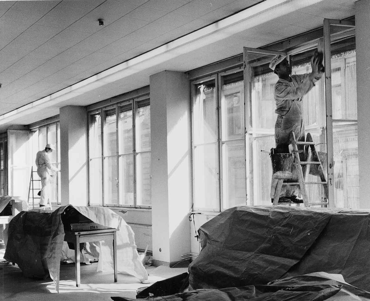 Reparations- och målningsarbeten. Fönster åt Mäster Samuelsgatan.