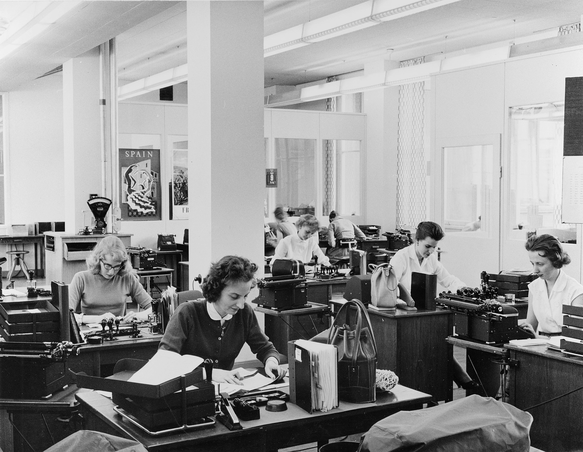 Postgirohuset, Stockholm, Korrespondensavdelningen på 1 tr. Utlandsavdelningen. Till höger fönster åt gården.