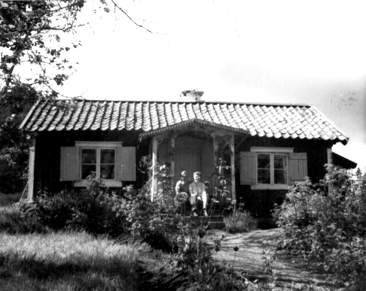Grödinge. Okänd stuga med två personer