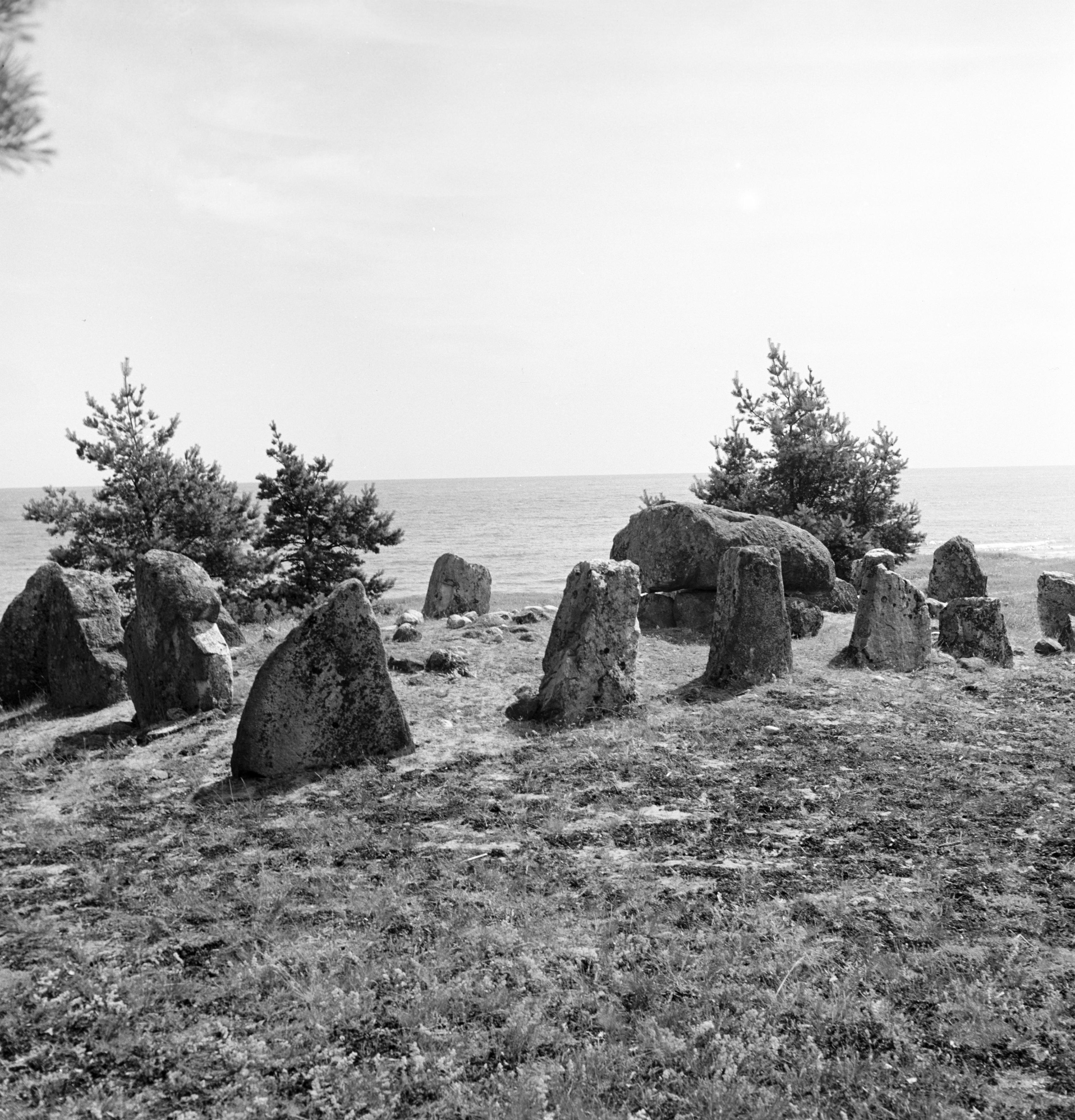 Dös i stensättning, RAÄ-nummer Ravlunda 40:1. Bilden tagen på 1940-talet.
